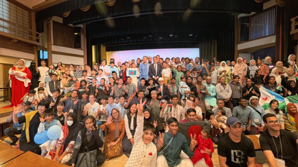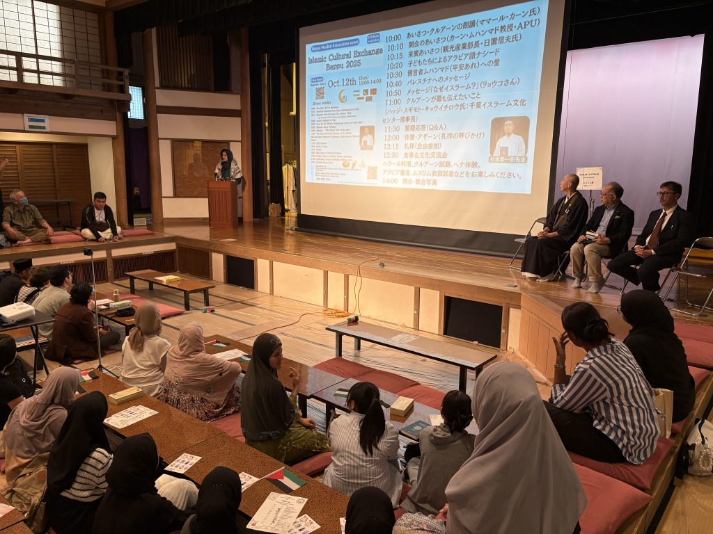 今年も別府市においてAPU(立命館アジア太平洋大学)の学生や卒業生や教員が中心となり、イスラーム文化祭りが開催されました。日本人の参加者70名を含めで、270名が参加しました。冒頭、立命館アジア太平洋大学の米山学長から挨拶がありました。現在日本で起こっている外国人の排外主義的な動きに懸念を示し、過去アメリカで日本人移民が差別された辛い経験を踏まえて、日本では外国人が同じような辛い経験をしないように、多文化共生を道を歩むべきだと強調しました。ウズベキスタン、パキスタン、バングラデシュ、インドネシア、スリランカ、アラブ・アフリカのハラール食事が提供され、会場は熱気で包まれました。