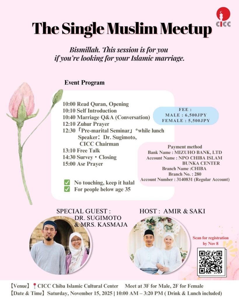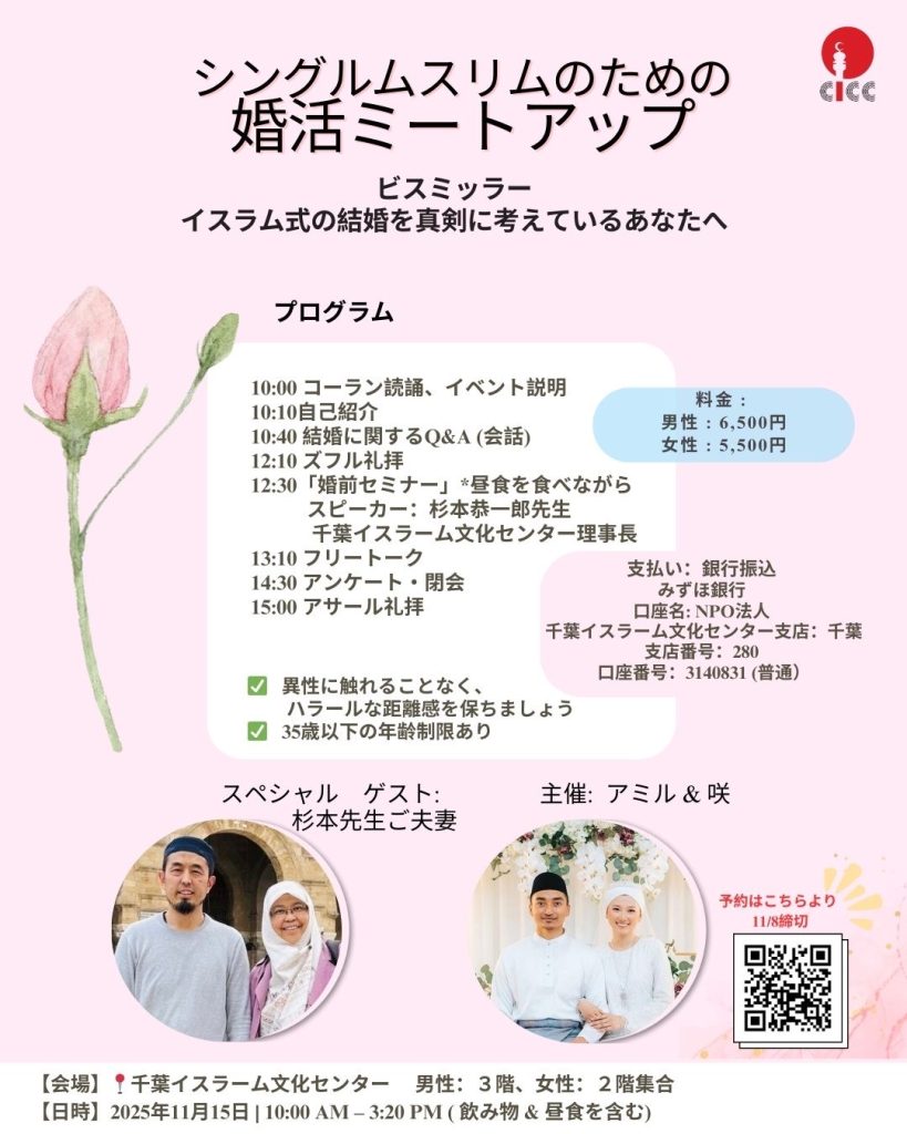 場所:千葉イスラーム文化センター4階(男性3階、女性2階集合)
